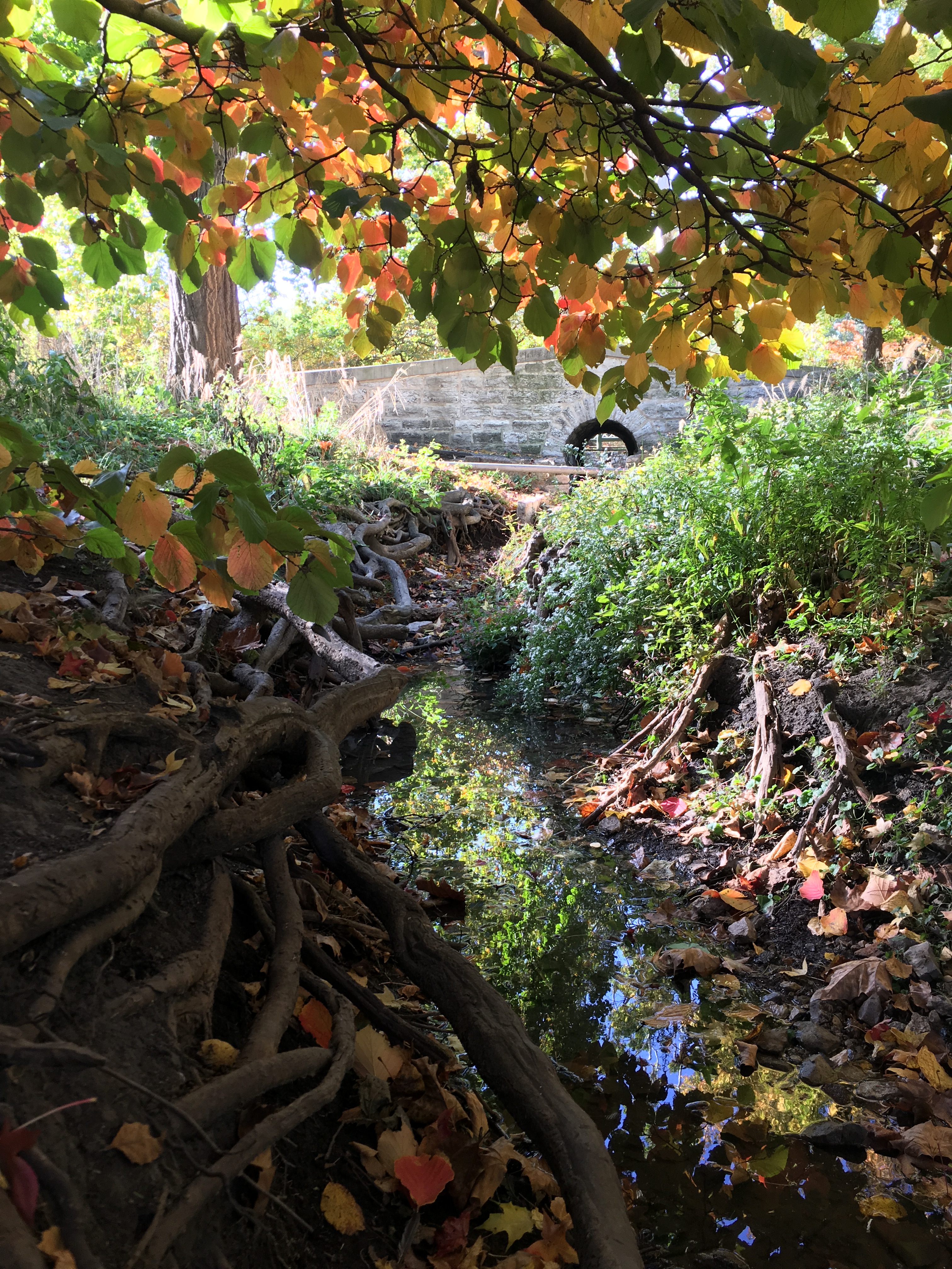As we piddled with the acorns by the walking path (rolling them, stomping on them, peeling off the outer shell of them, etc) I started munching on the nutmeat which a child had carefully extracted for me. I had jokingly mentioned to him “you know you can try eating the acorn if you take the outer shell off?!” and was therefore obliged to eat it when he proudly offered it to me after he did just that. After gingerly munching a few moments it started to occur to me that I was EATING the stuff that these large, beautiful, quintessential neighborhood trees are MADE of! In essence, I was EATING a tree! I had tried an acorn before but this time it tasted like nothing I had eaten before. Yes a bit bitter (I’ve had much worse though), but this time, in this place, with these children in October, the bitterness had a deeply satisfying flavor! I felt deeply that it was very GOOD. This is the food that had sustained Native Americans, that feeds creatures like squirrels, deer, and insects, and that propels a giant Oak tree skyward which has fed me with shade to cool off in summer, Oxygen with which to breathe, wood to build my house and to make a fire with in the fireplace to keep me warm. How good is that?! It was an amazing spiritual moment that I stumbled upon all while playing with kids at the park!
