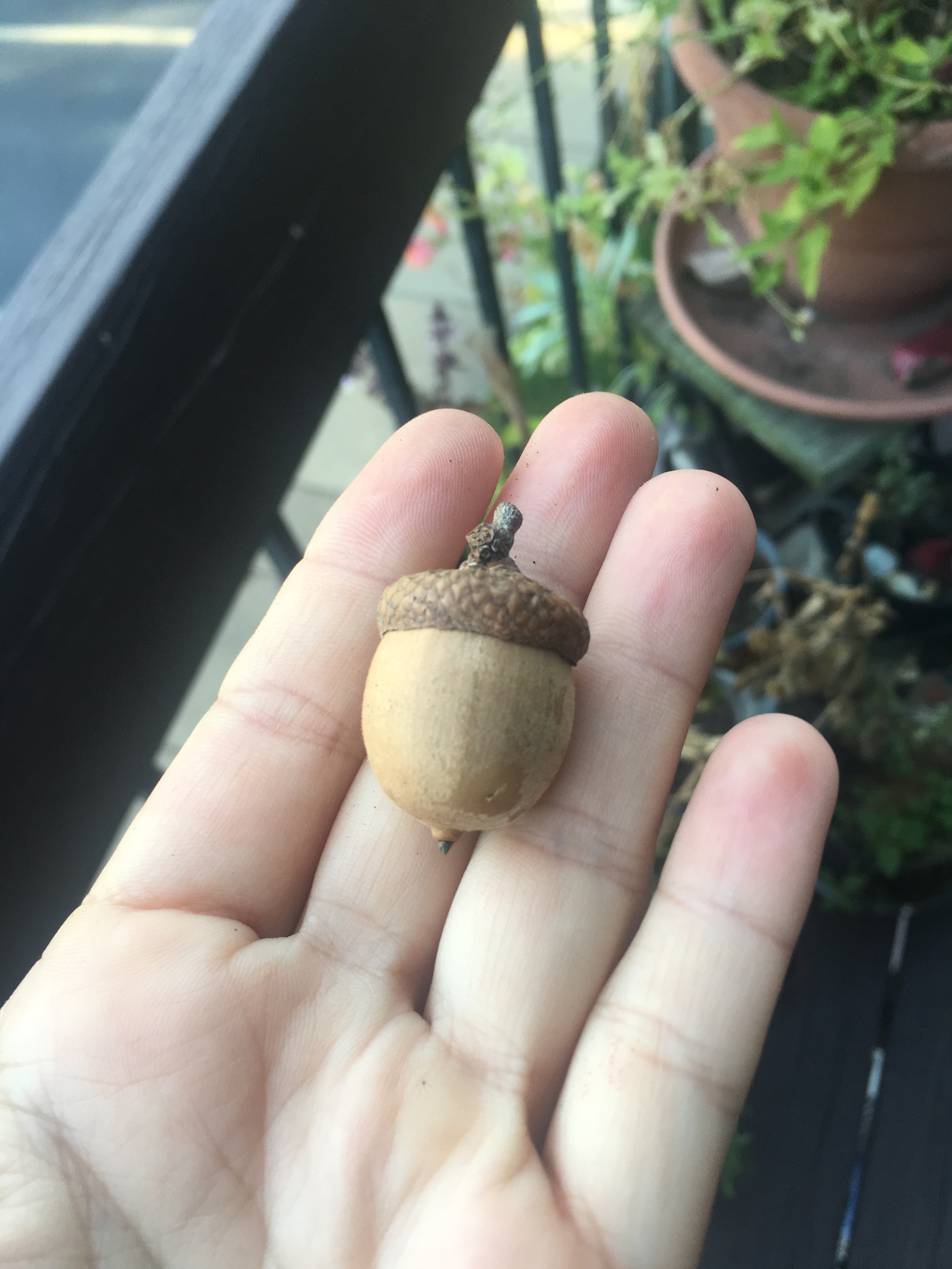 I’m getting my chance now too. It’s nearly impossible to overlook the acorns when meandering at a 3 year old pace in Oak-laden Tower Grove Park with those same 3 year olds who want to see and hold nearly everything within reach. We’ve come across acorns that were light brown, dark brown , yellow (yellow!), two-toned, small, large, smooth, capless, doubled-up, misshapen, elongated, cracked, smashed, as well as perfectly intact.